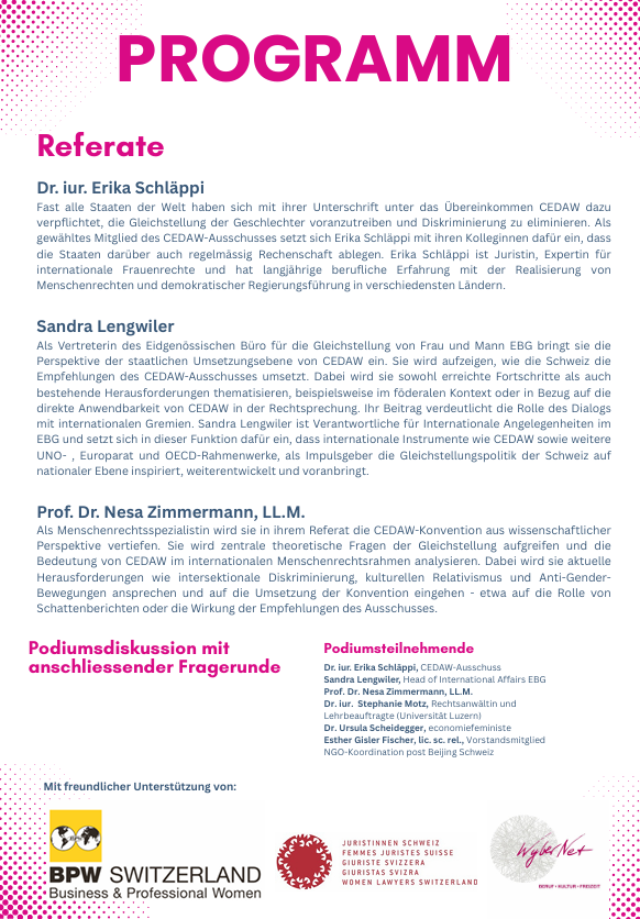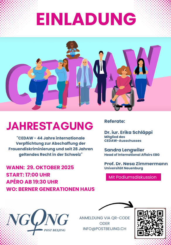 Vor 25 Jahren wurde das wichtigste internationale Instrument zur Erreichung der Gleichstellung der Frau* von der Schweiz ratifiziert: das Übereinkommen zur Beseitigung jeder Form von Diskriminierung der Frau* (CEDAW). Dennoch ist CEDAW einer breiten Schweizer Öffentlichkeit bis heute...